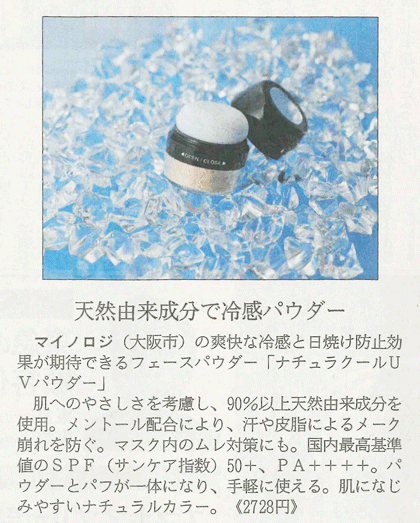 90%天然由来成分で作られたUVパウダー。メントール配合でひんやり感があり、汗やマスクムレによるメイク崩れを防いでくれます。パフ一体型容器で手軽に使用できます。