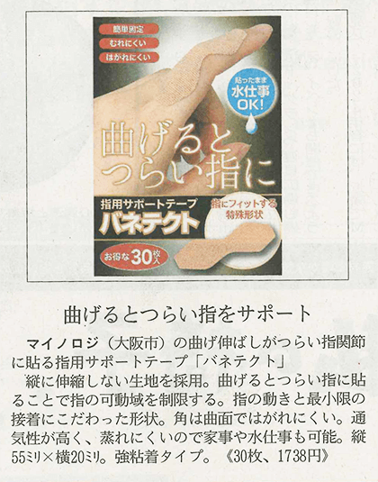 曲げるとつらい指関節に貼るだけのサポートテープ。テープを貼ることで指の可動域を制限し、つらさを軽減。通気性が高く、蒸れにくいので水仕事もOK。